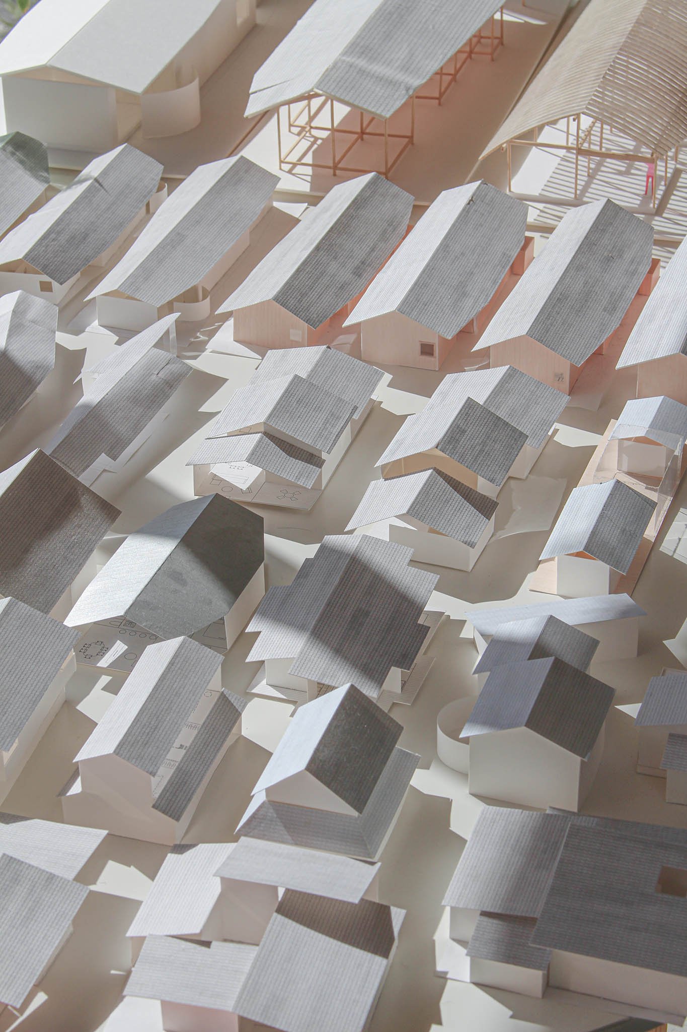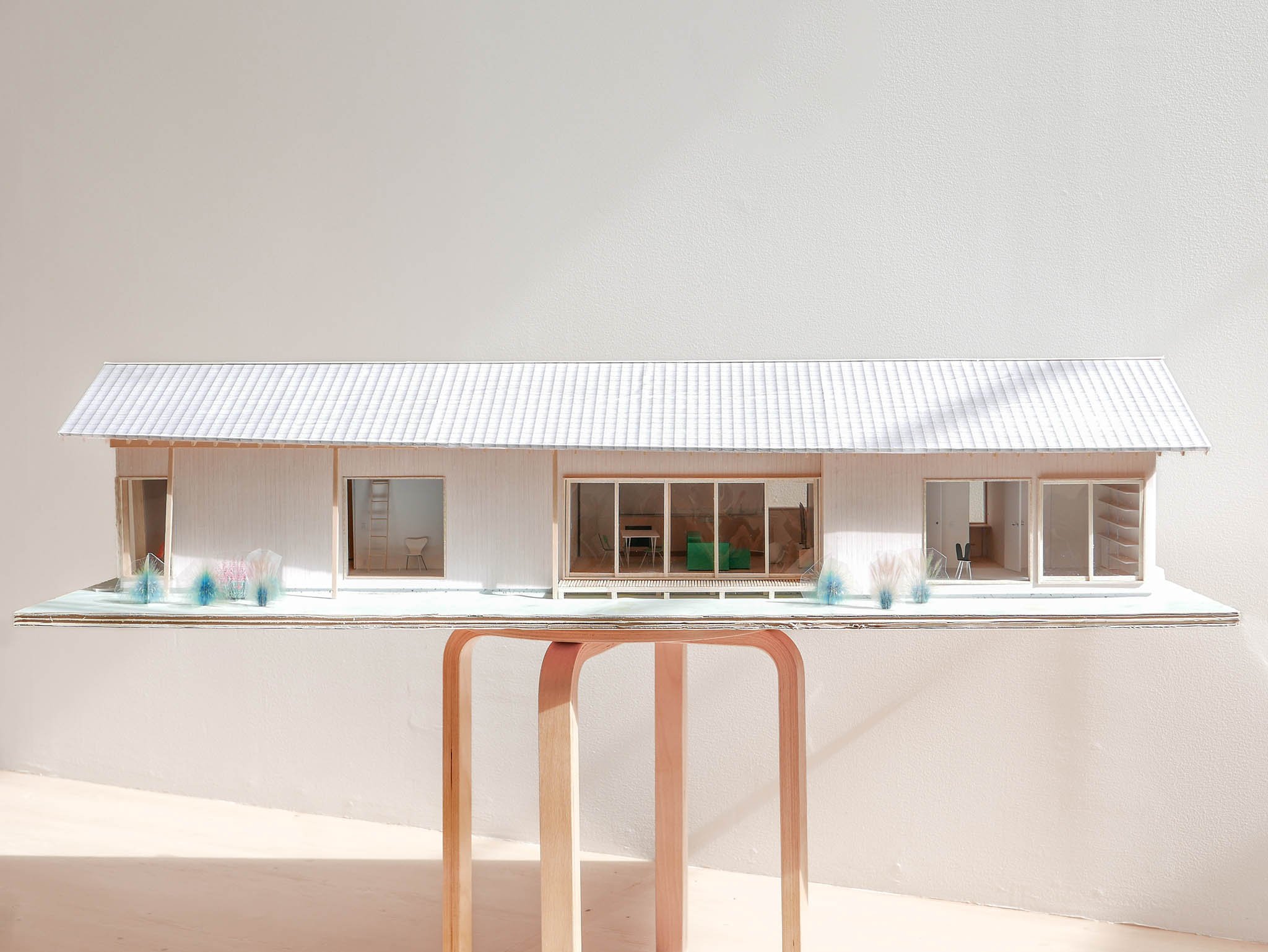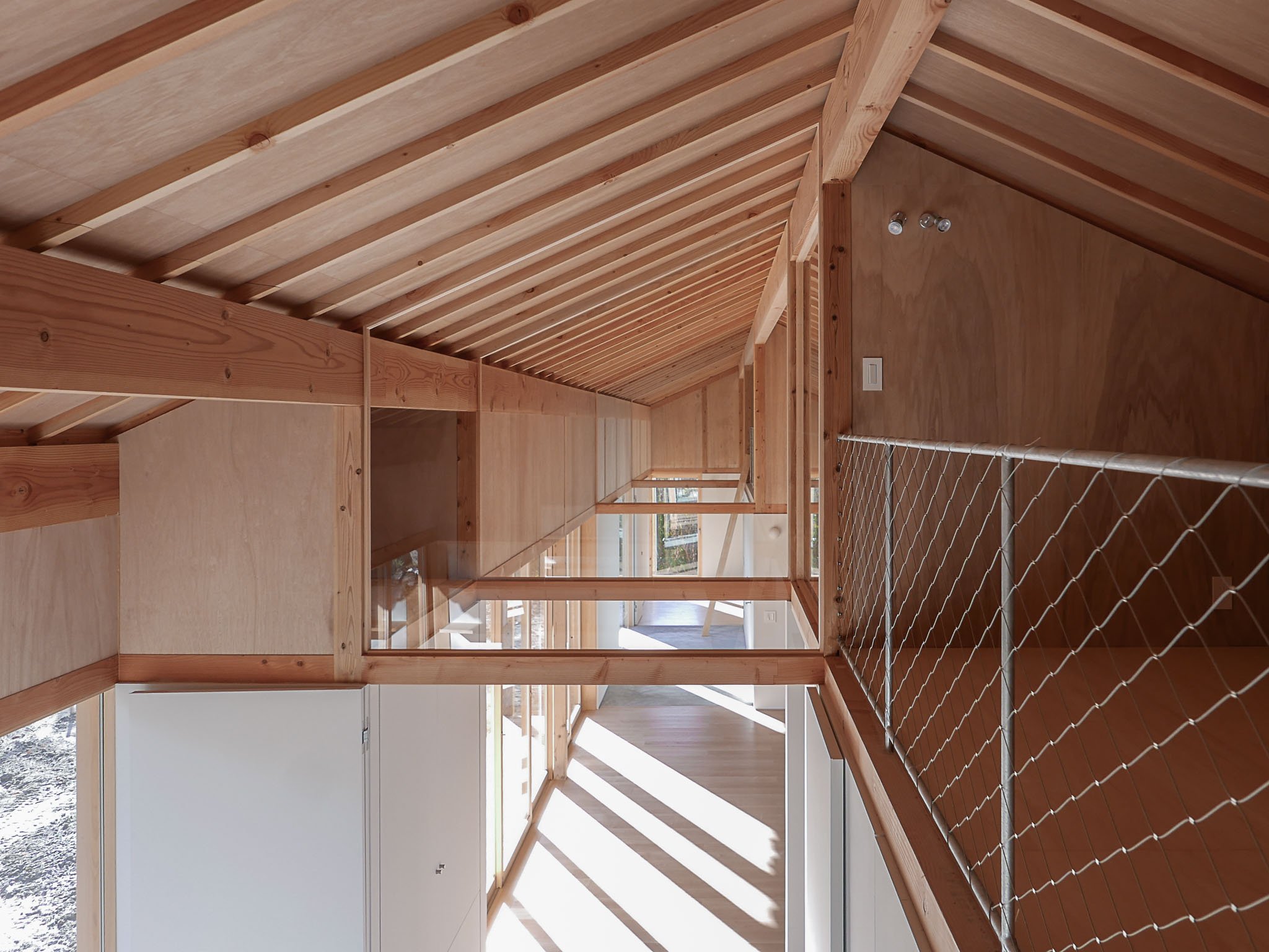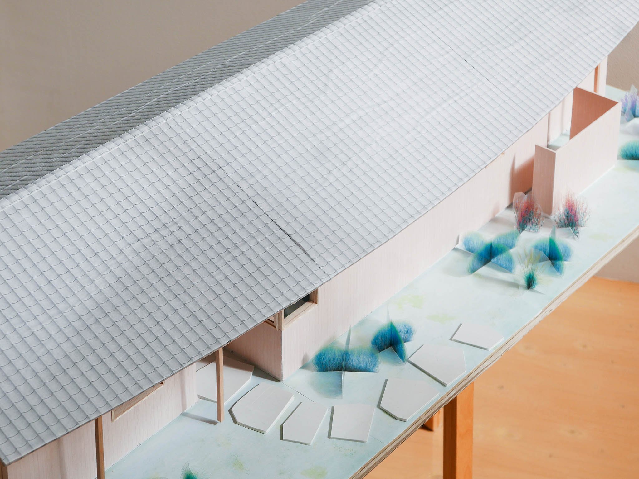 A house for a young couple with a newborn, three cats, and a dog, located beside the Notori River. The house faces southeast and follows the extended forms commonly found in the area, composed of multiple volumes arranged in a row. These are gathered under a single, gently curved roof that references the regional okiyane (raised roof) of Kyushu. Responding to local regulations governing materials, height, and roof pitch, the project seeks harmony with the townscape and natural environment of Akizuki, while making a modest attempt to explore new possibilities within a preservation area. Location: Asakura, Fukuoka, Japan Program: Family Home Year: 2024 - 2026 Floor area: 115 m2 / 35坪 Team: aki(architects) + Kuroiwa Structural Engineers Construction: Tajiri Construction Photos: aki(architects)